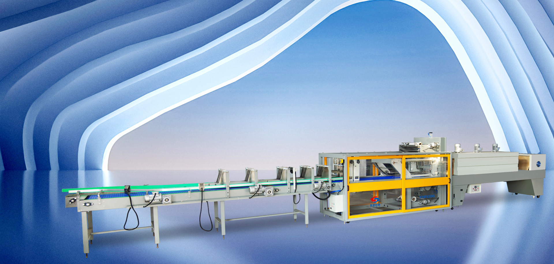 專為啤酒、飲料、純凈水、果汁、乳制品等飲品的全自動包裝生產線設計。 具有輸送進料、理瓶、裹膜、封切、收縮、冷卻定型等流程的全自動化功能。采用世界先進的薄膜恒溫熱合技術,封口清晰,牢固。封口快速冷卻結構,保證在高速度生產條件下,封口強度更高。采用PLC程序自動循環控制,性能穩定可靠。原裝進口導桿氣缸,保證準確動作,經久耐用。感應開關控制送膜系統,可靠調控送膜長度,減少損耗。所有輸送均為變頻調整,輸送平穩流暢。獨特收縮通道,兩套離心式熱風循環系統,熱量平衡均勻,收縮緊固、美觀。三層隔熱處理,保溫性能好,升溫快,節約能源。加強型冷卻定型通道,可使包裝膜迅速成高強度狀態,方便儲運。包裝組合及瓶型改變時調整方便,可實現一機多用的功能。